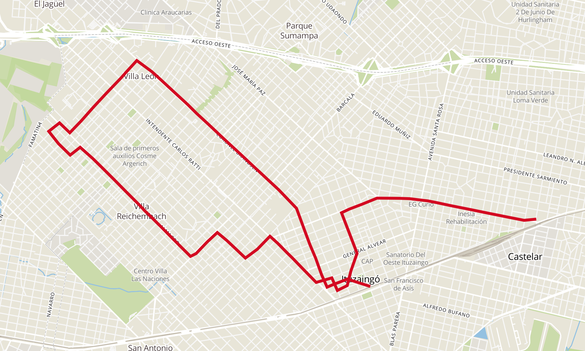 | Las Heras Y Belgrano (395 Brandsen) | Estación Castelar (395) |