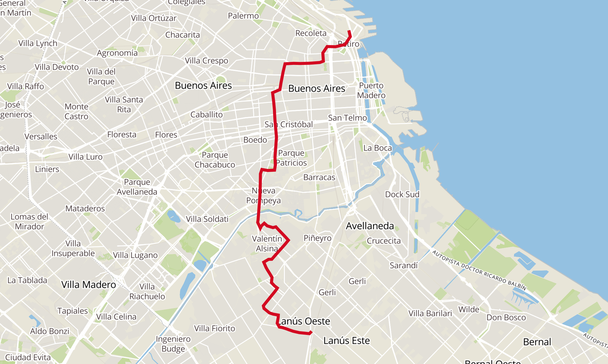 Recorrido de la línea 75: Est. Lanús x Hospital Penna