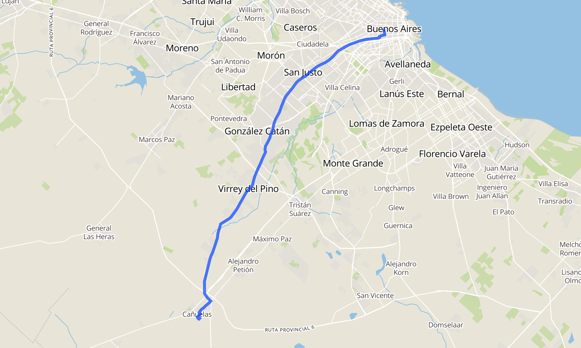 | Plaza Miserere (88 x Alberdi) | Estación Cañuelas (88 - 218) |