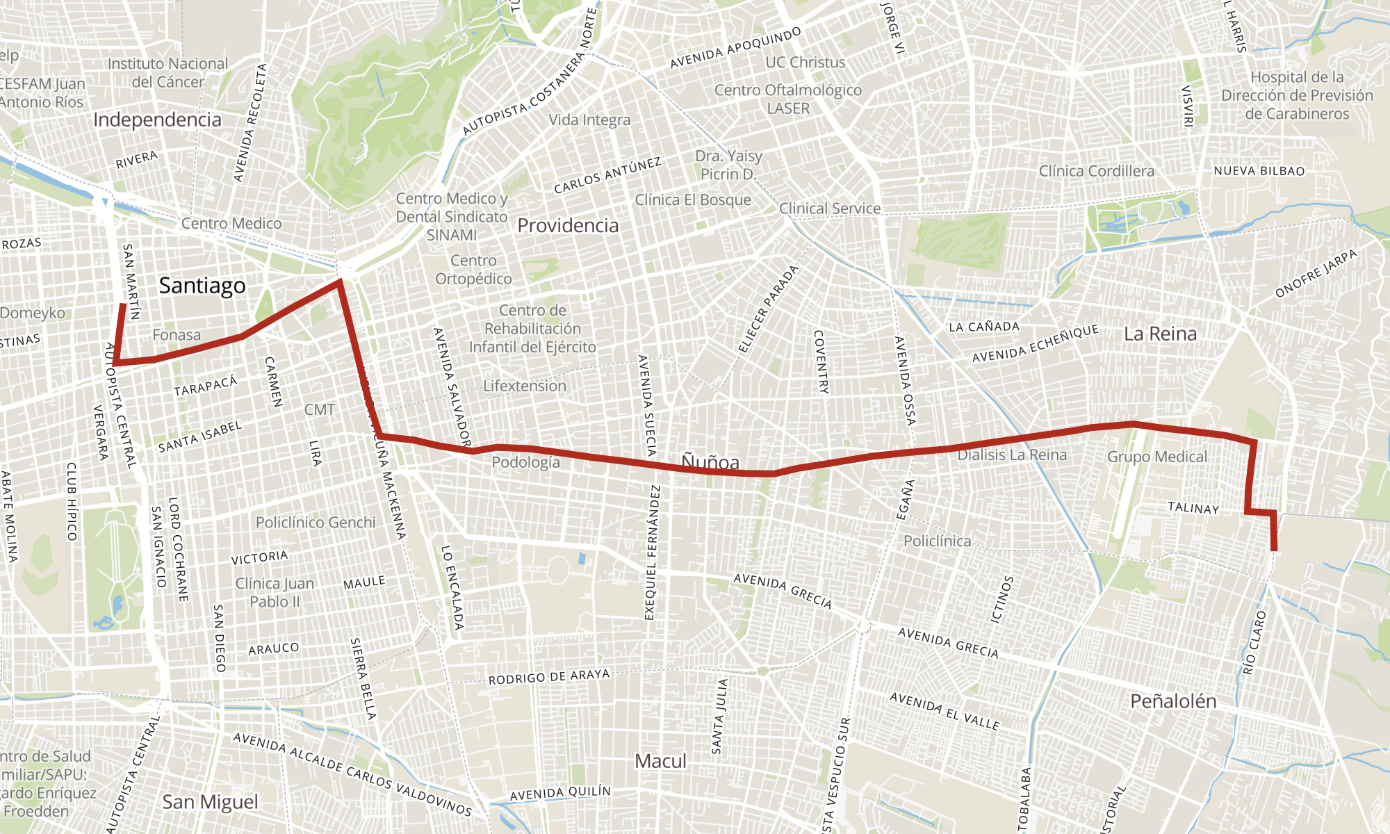 Sentido: PD738-Parada / Club de Campo Militar ‎→ PA243-Parada 5 / (M) Santa Ana (43 paradas)