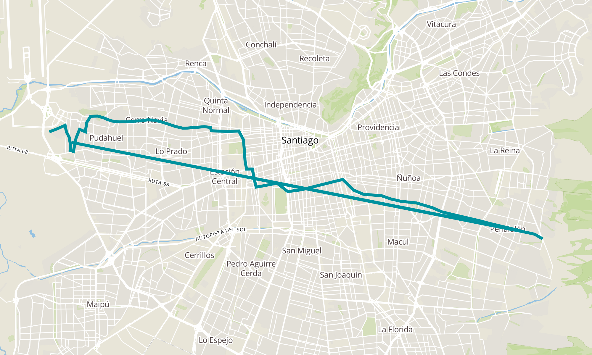 | PD1429-Av. Diagonal Las Torres / esq. Álvaro Casanova | PJ1670-Río Clarillo / esq. Río Trancura |