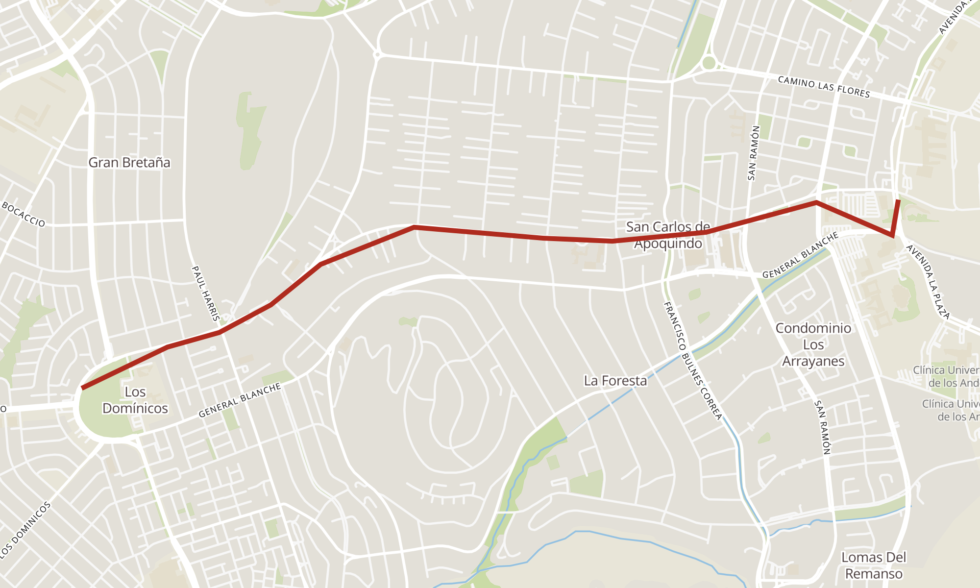| PC1064-Parada 1 / (M) Los Dominicos | PC636-Avenida La Plaza / esq. Camino El Alba |