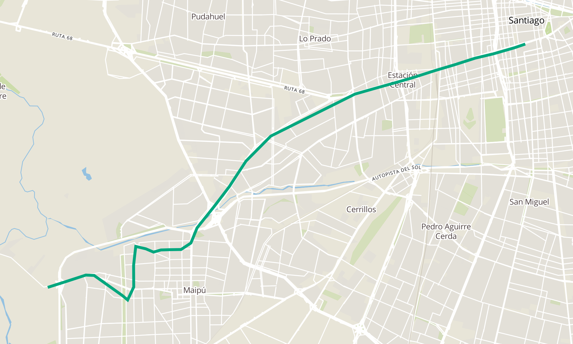 | PI949-Camino a Rinconada / esq. Autopista Del Sol | PA167-Parada 6 / (M) Universidad de Chile |