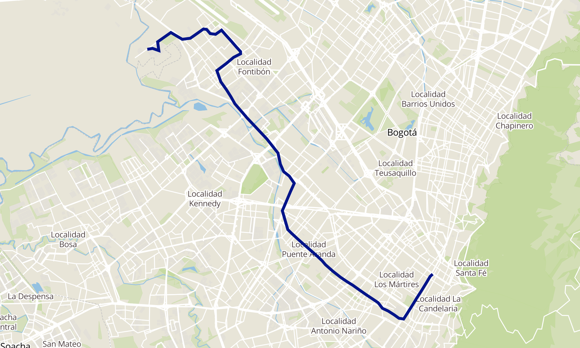 | Br. Praderas De Fontibón (Kr 123 - Cl 14) | Estación Las Nieves (Ac 19 - Kr 9) (B) |