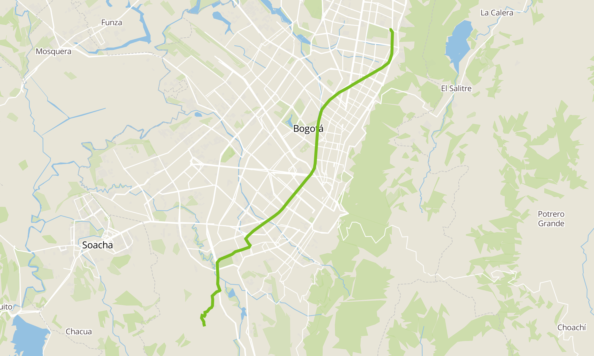Sentido: Br. Arabia (Kr 18g - Cl 81g Sur) ‎→ Éxito Country (Ac 134 - Kr 9b) (77 paradas)