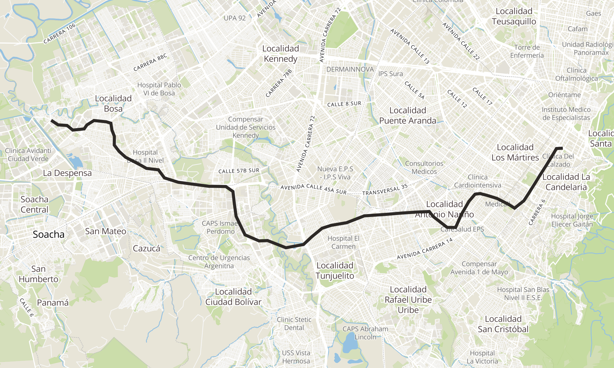 | Br. El Jardín (Kr 80i - Cl 87b Sur) (A) | Br. Veracruz (Ac 19 - Kr 8) (A) |