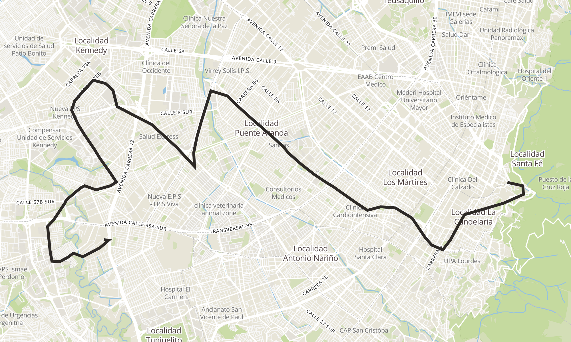| Rincón De Venecia (Dg 49 Sur - Kr 60 Bis) | Br. Las Aguas (Cl 22 - Kr 1 Este) |