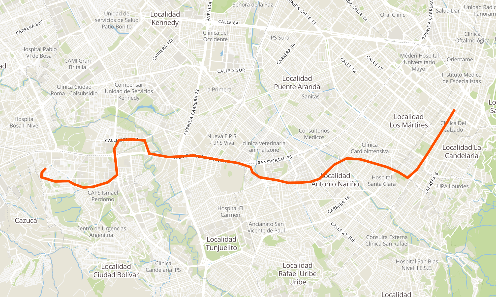 | Br. La Alameda (Ak 10 - Ac 19) | Br. Quiba (Kr 76a - Cl 59a Sur) |