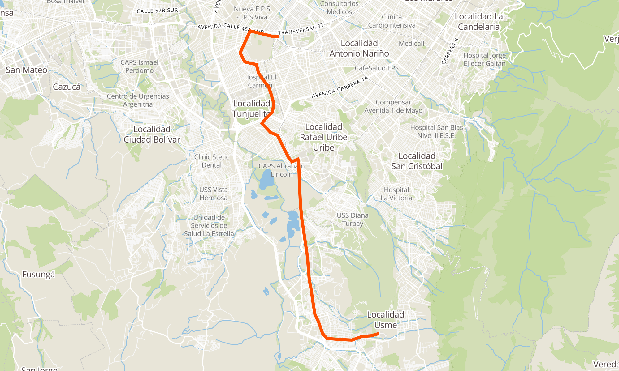 Sentido: Urbanización Rincón De Bolonia (Cl 79 Sur - Kr 9 Este) ‎→ Br. Arboleda Del Rey (Kr 50 - Auto Sur) (40 paradas)