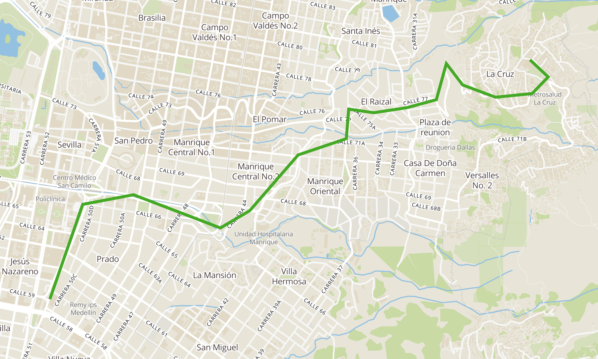 Br. La Cruz (Cr 24 - Cl 79g, Medellín)Estación Prado (Cr 51 - Cl 58, Medellín)