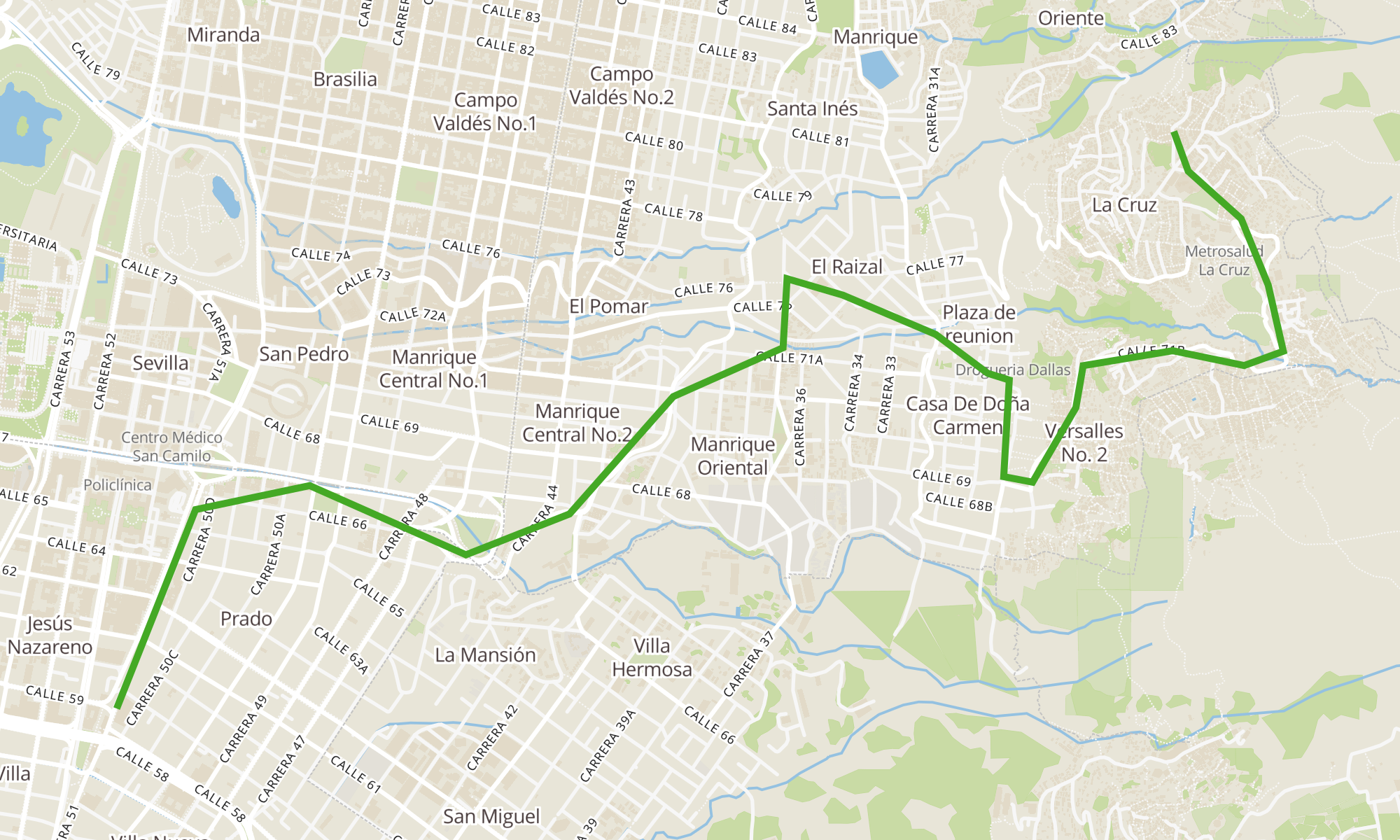 | Estación Prado (Cr 51 - Cl 58, Medellín) | Br. La Cruz (Cr 24 - Cl 79c, Medellín) |