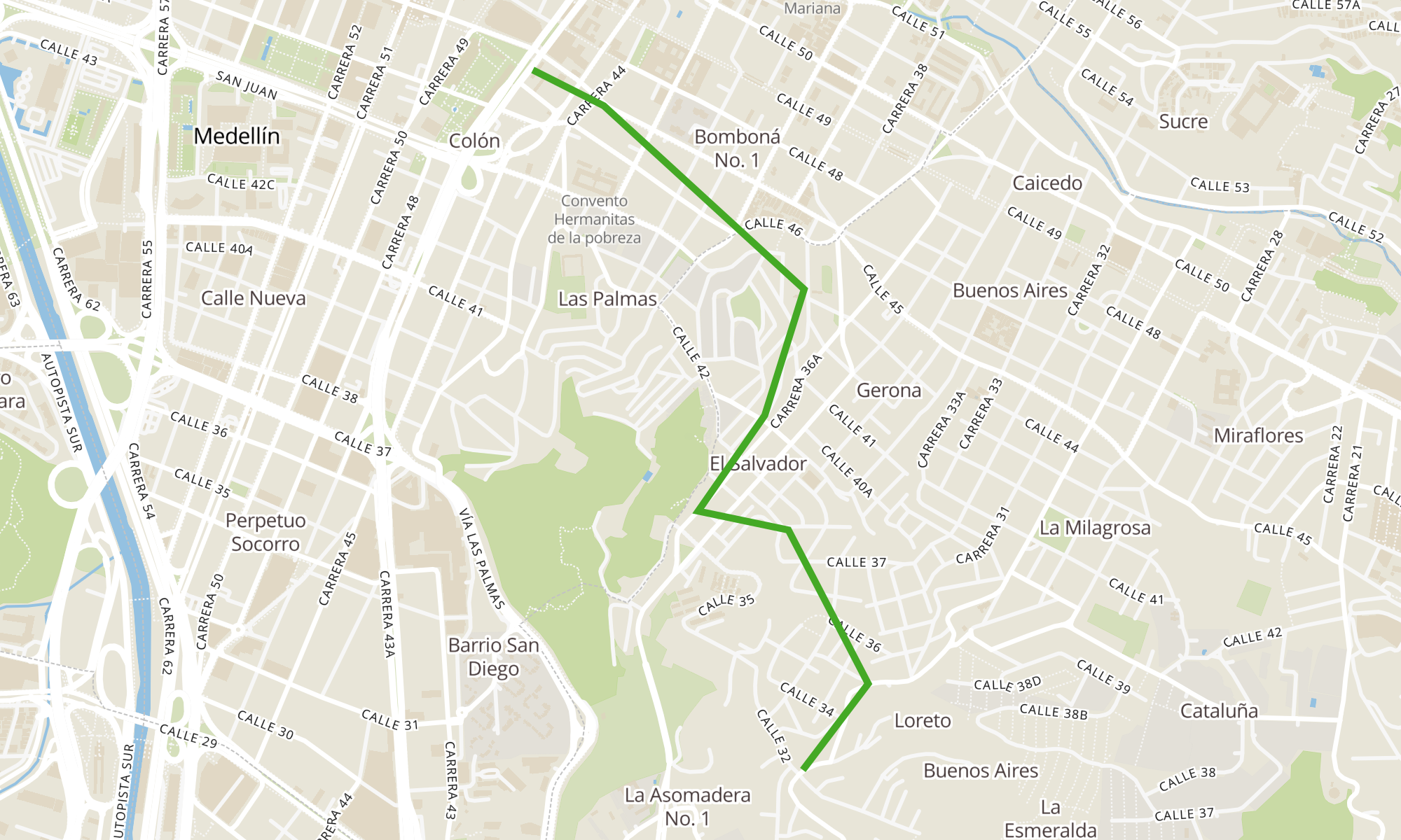 | Estación De Policía De San Antonio (Cr 46 - Cl 46, Medellín) | Br. Loreto (Cr 32 - Cl 32, Medellín) |