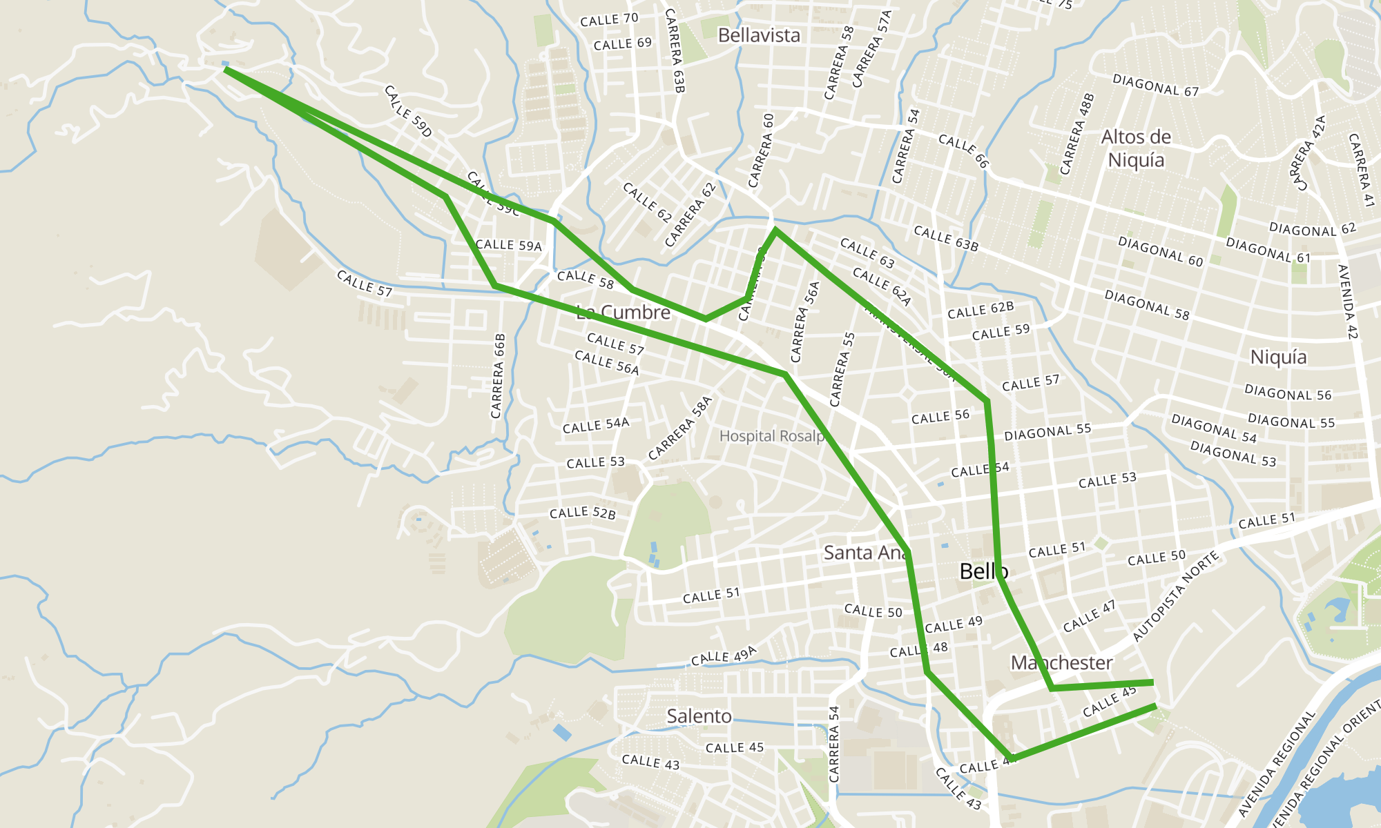 | Carrera 46, 45, Bomberos Bello | Calle 44, Estación Bello Buses |