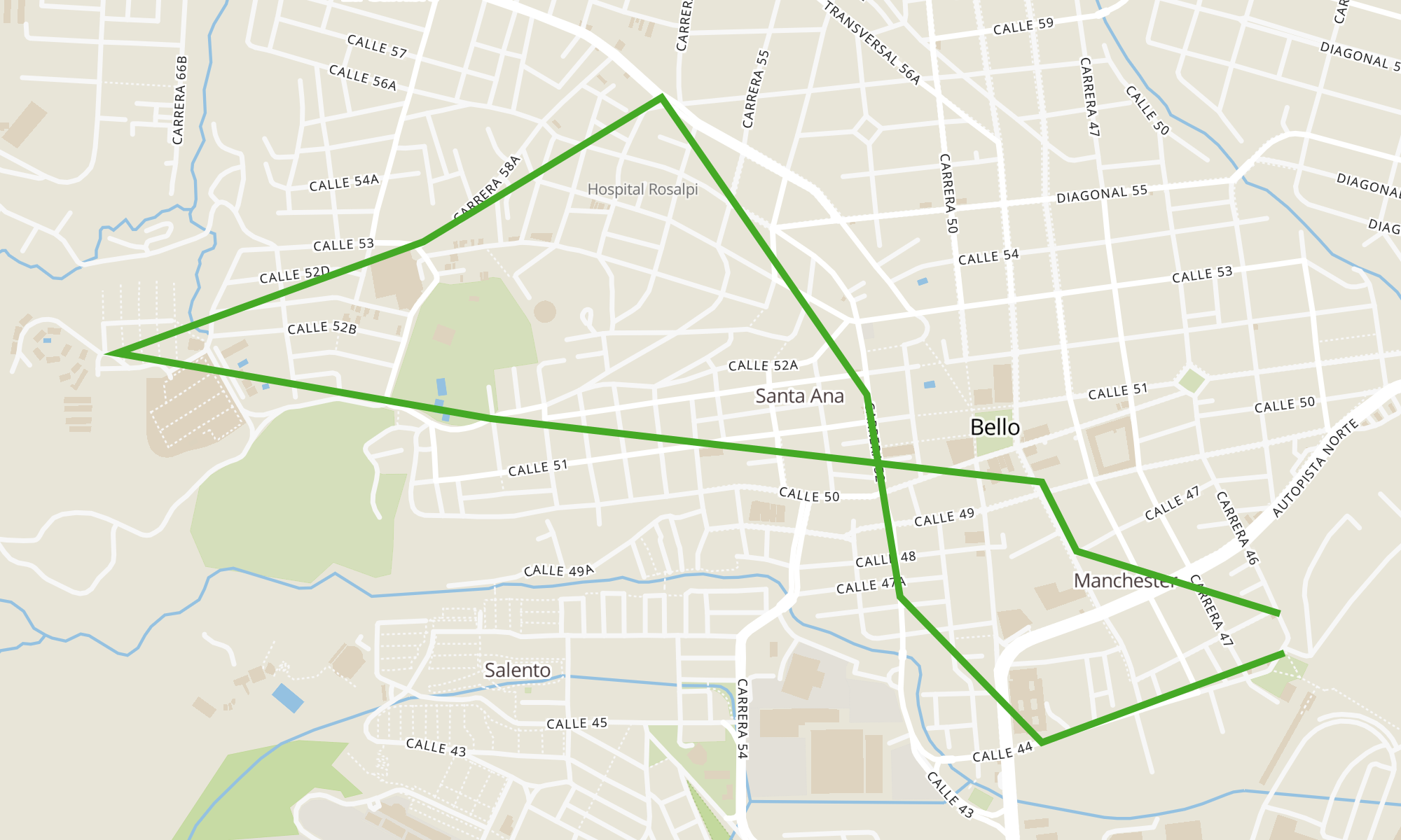 | Carrera 46, 45, Bomberos Bello | Calle 44, Estación Bello Buses |