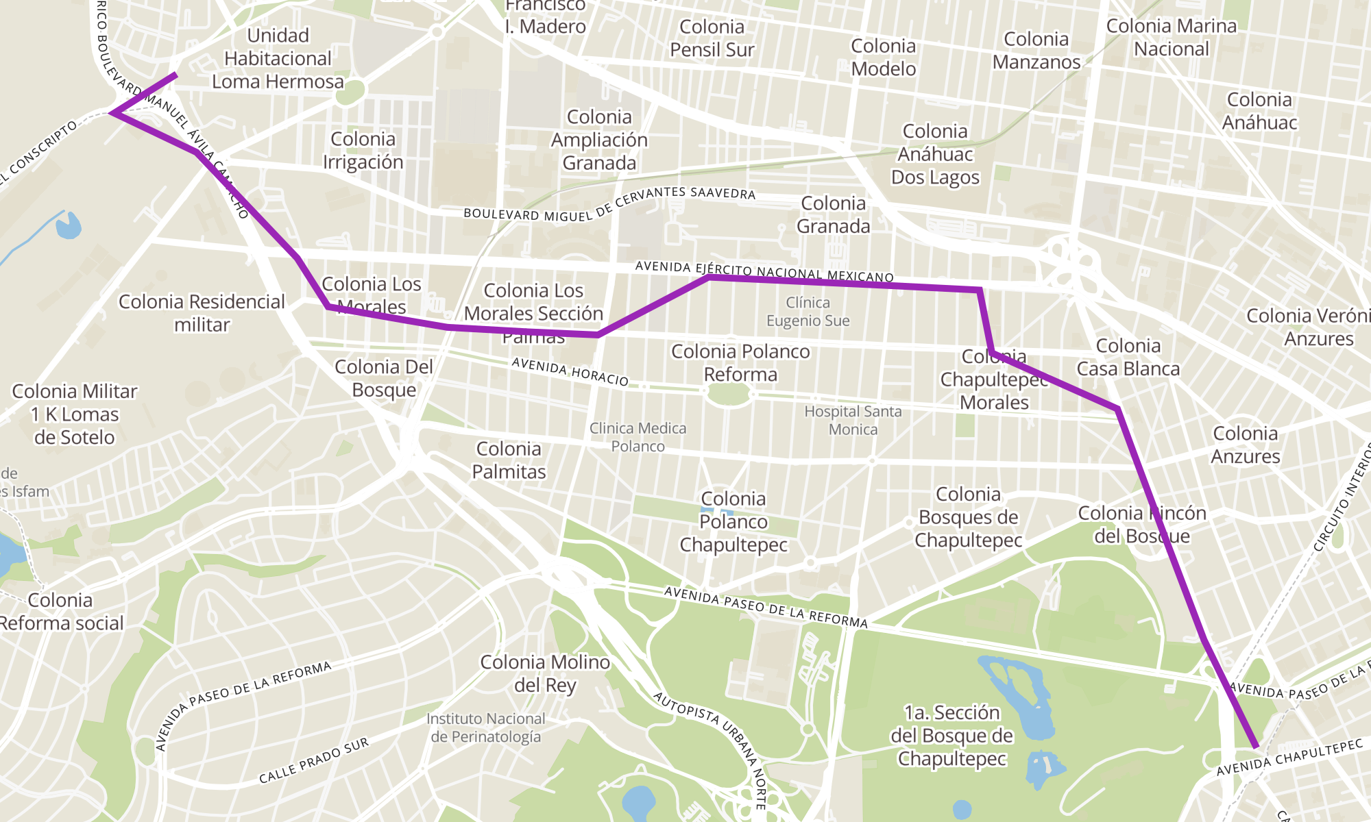 | Av. Ingenieros Militares y Av. Lomas de Sotelo | Chapultepec |