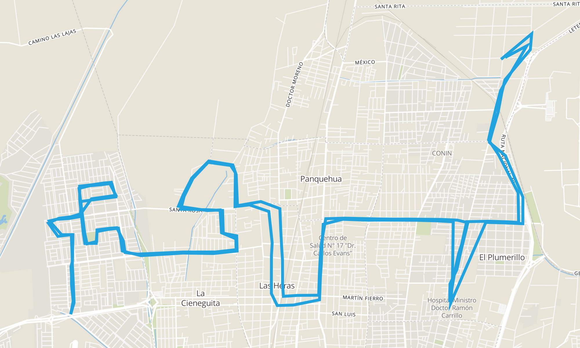 Sentido: Condarco (Las Heras, Mendoza) ‎→ Jorge Newbery y Condarco (Las Heras, Mendoza) (166 paradas)
