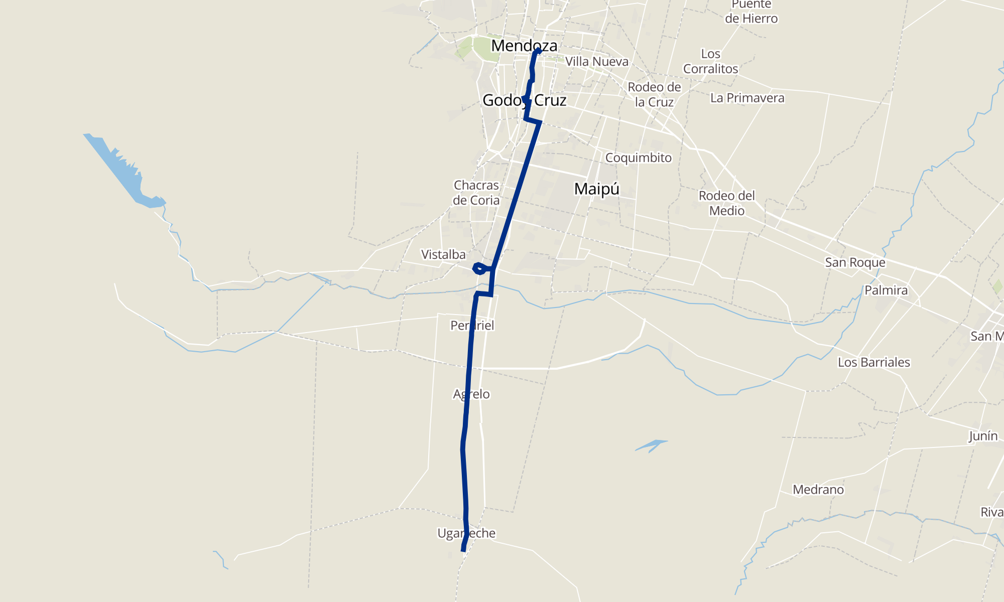 | Av. Gdor. Ricardo Videla y Reconquista Sur (ETOM) | Arturo Funes y Av. San Martín (Luján de Cuyo, Mendoza) |