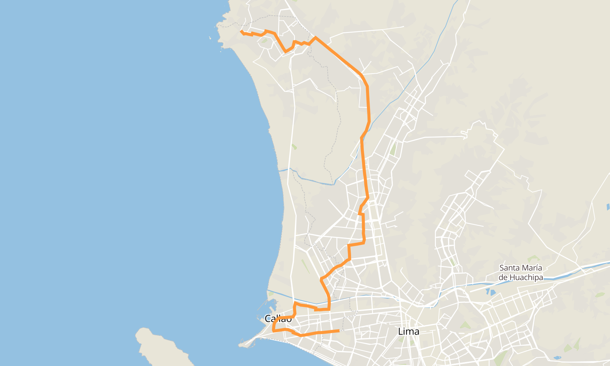 Recorrido de la línea 1448: San Miguel (Av. Venezuela) - Ventanilla (Pachacútec)
