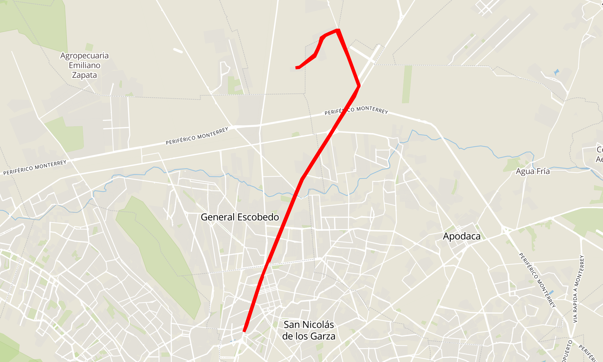 Sentido: José López Portillo (Quebec - Ontario) ‎→ Universidad (Plaza Andenes San Nicolás) (70 paradas)