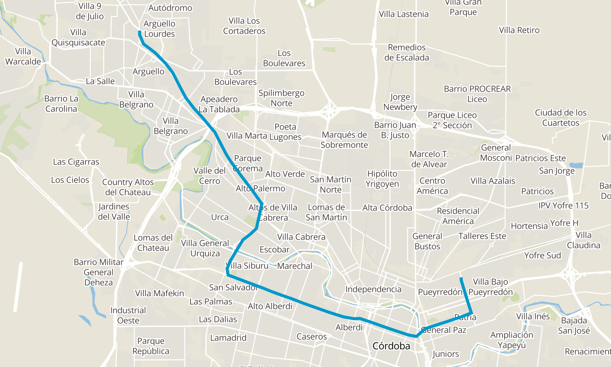 Recorrido de la línea B1: PUEYRREDON A ARGUELLO