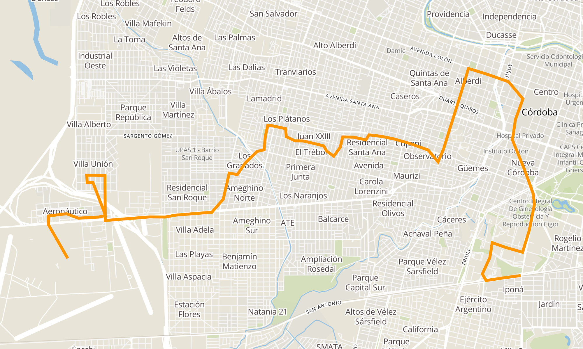 Sentido: Escuela de Aviacion ‎→ Cruz Roja y Av Valparaiso (70 paradas)