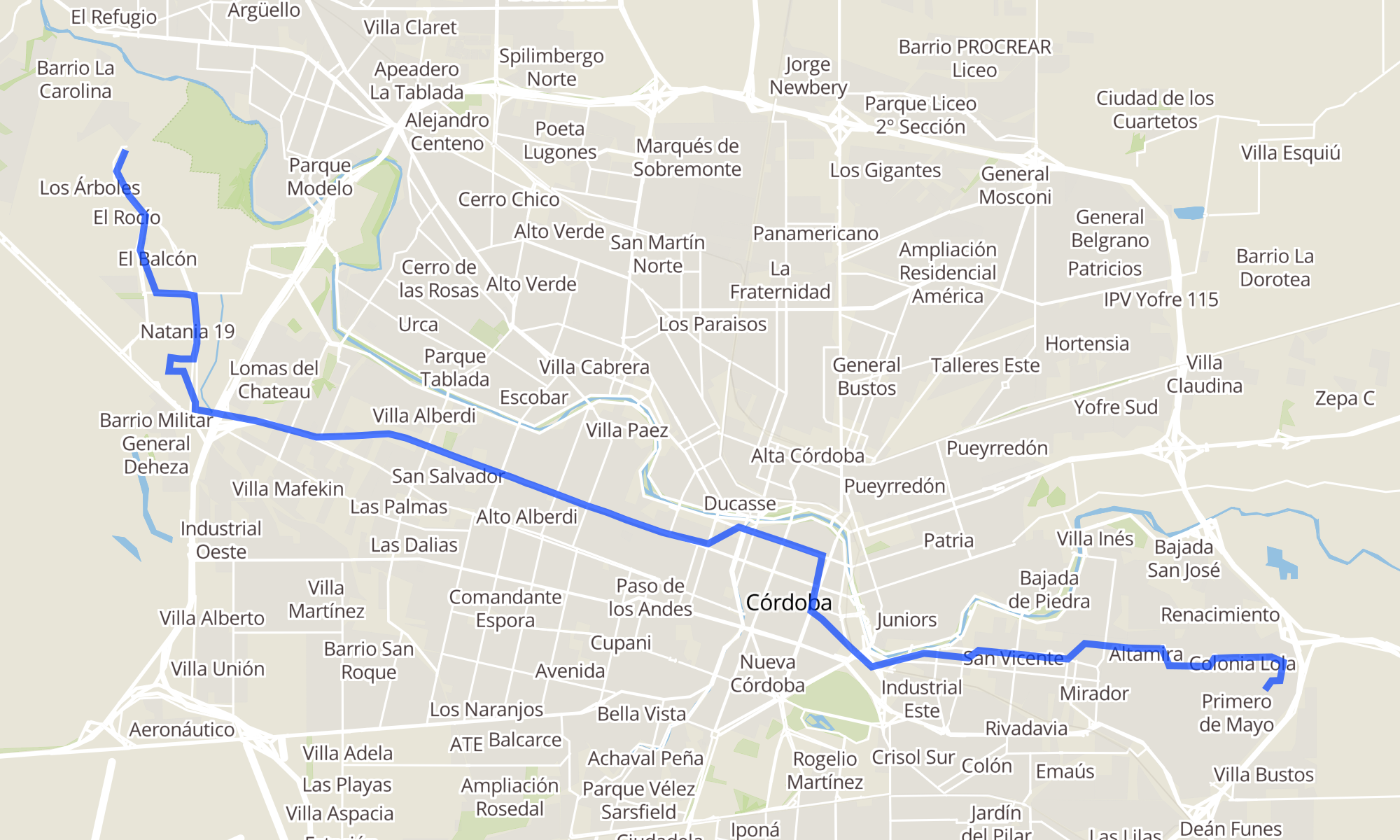 Recorrido de la línea 70: COLONIA LOLA A VALLE ESCONDIDO