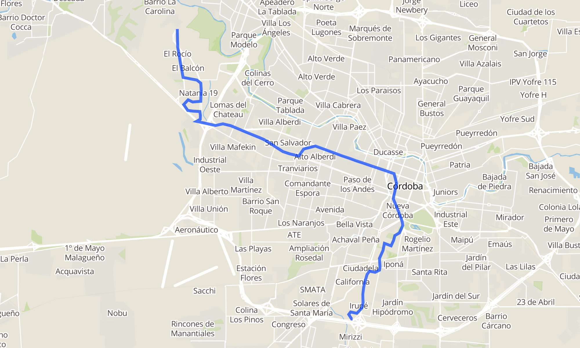 Recorrido de la línea 76: CABO FARINA A B° VALLE ESCONDIDO