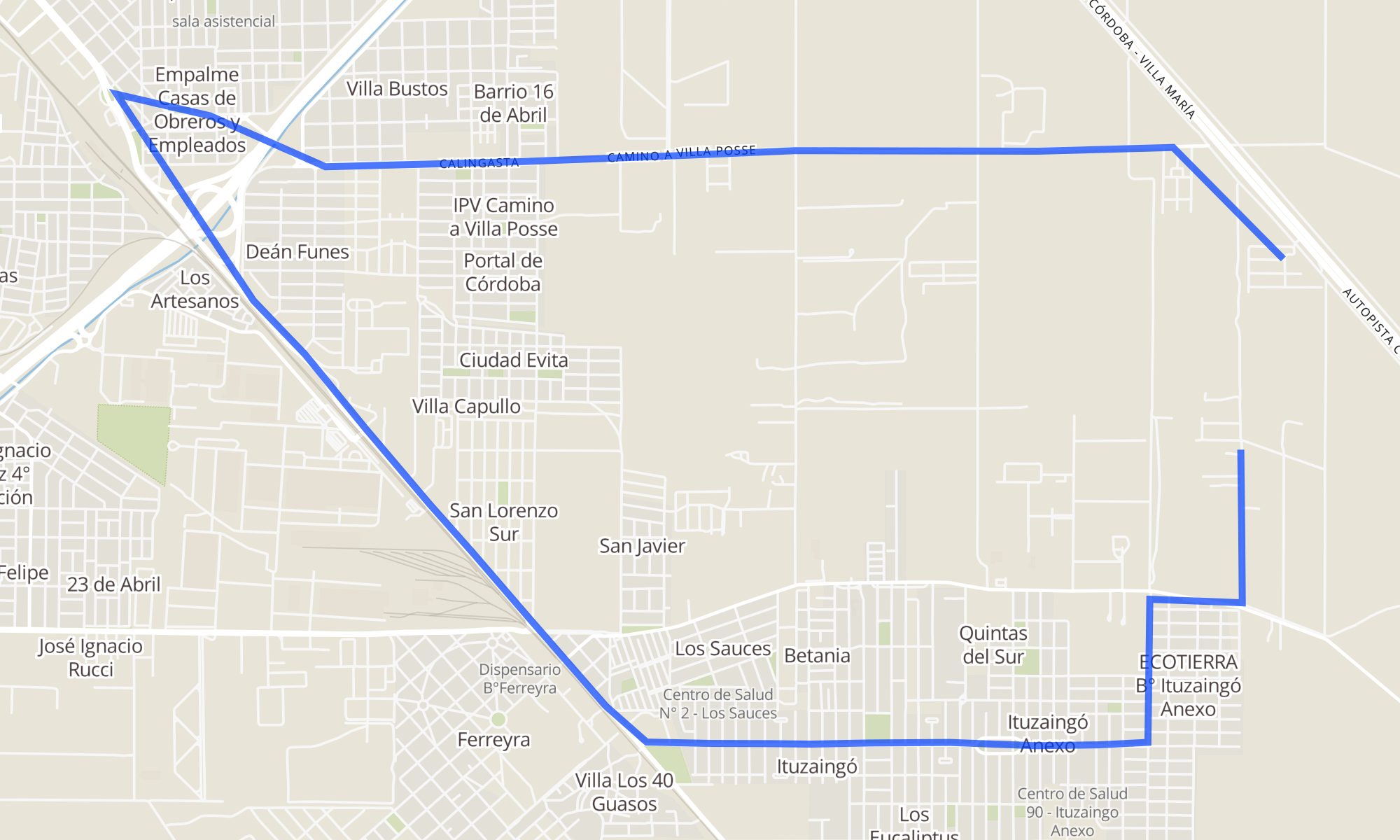 Recorrido de la línea C2: B° QUINTA CAPILLITA A B° EMANUEL II