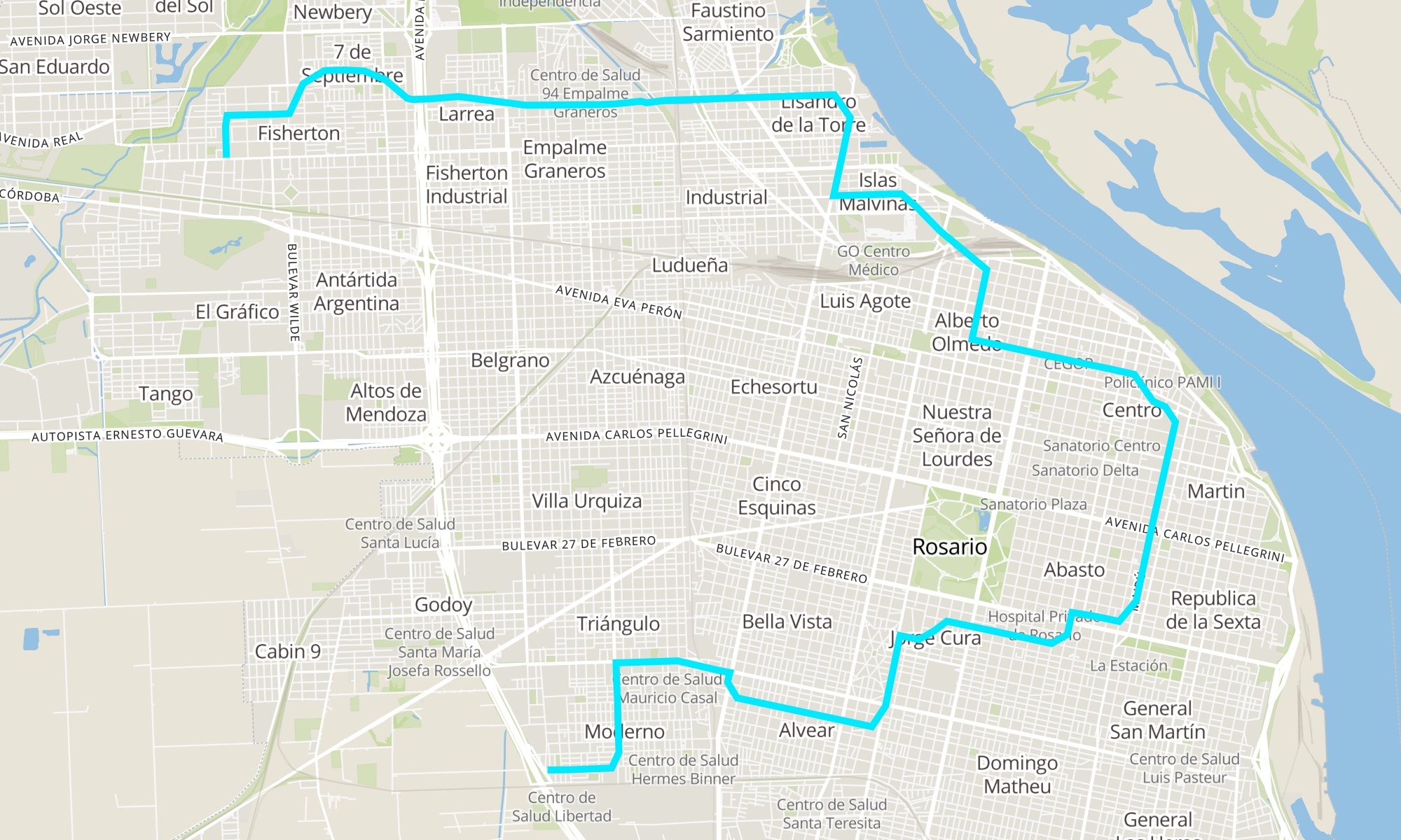 Recorrido de la línea 110: J.PABLO II - MARADONA-AMBAT- REPUB