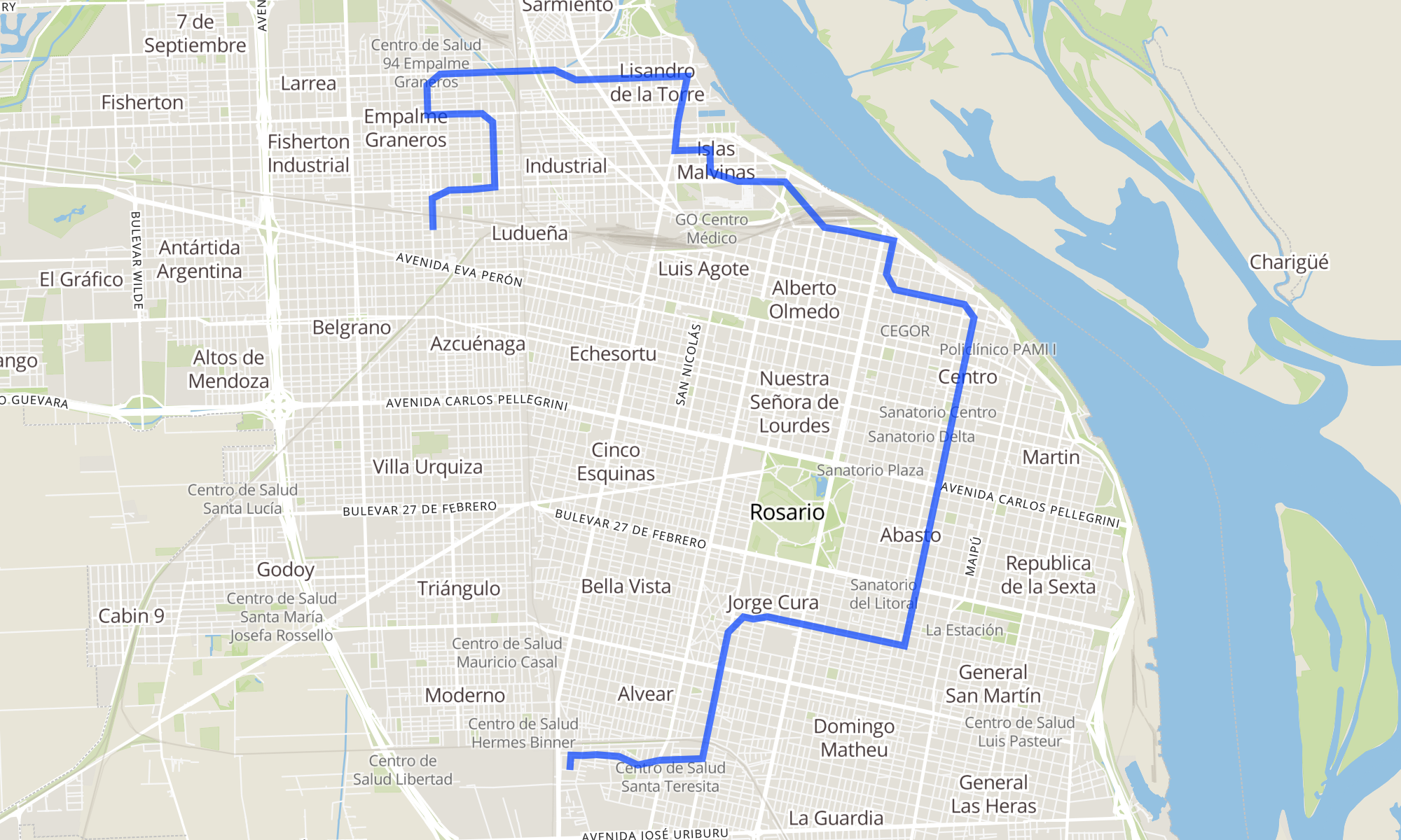 Recorrido de la línea 129: Urquiza y Magallanes-WINTER Y N.HUAPI