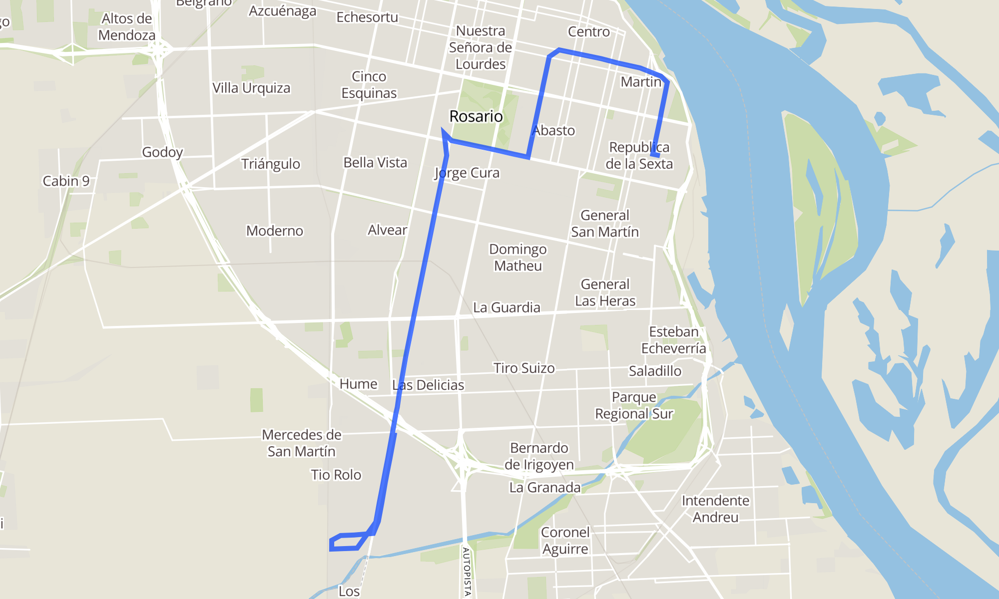 Sentido: RIOBAMBA y CHACABUCO ‎→ OVIDIO LAGOS y BATLLE Y ORDOÑEZ (80 paradas)