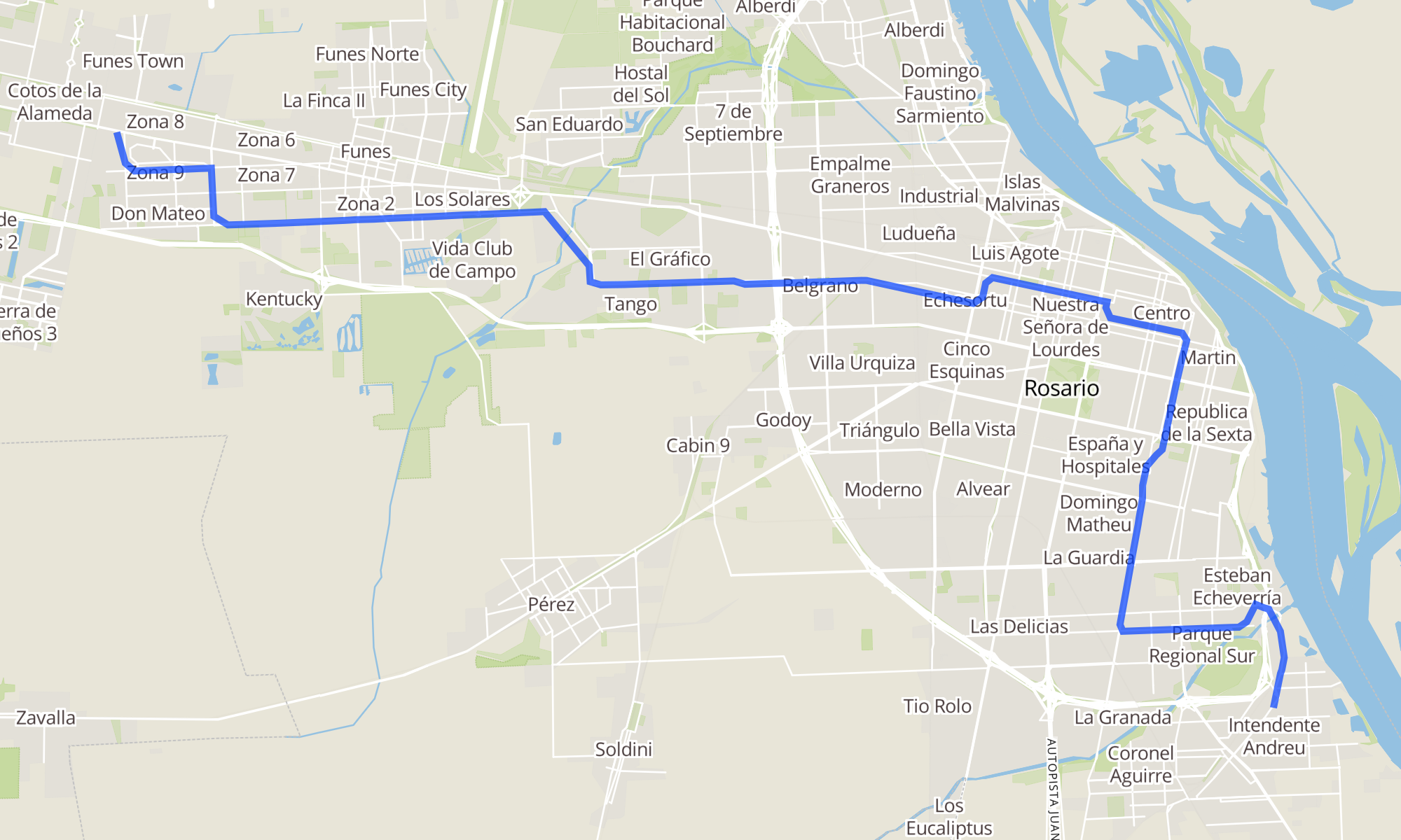 | RUTA NAC. 9 (Funes) y PUNTA DEL ESTE (Funes) | J D PERON (VGG) y GRAL. LOPEZ (VGG) |