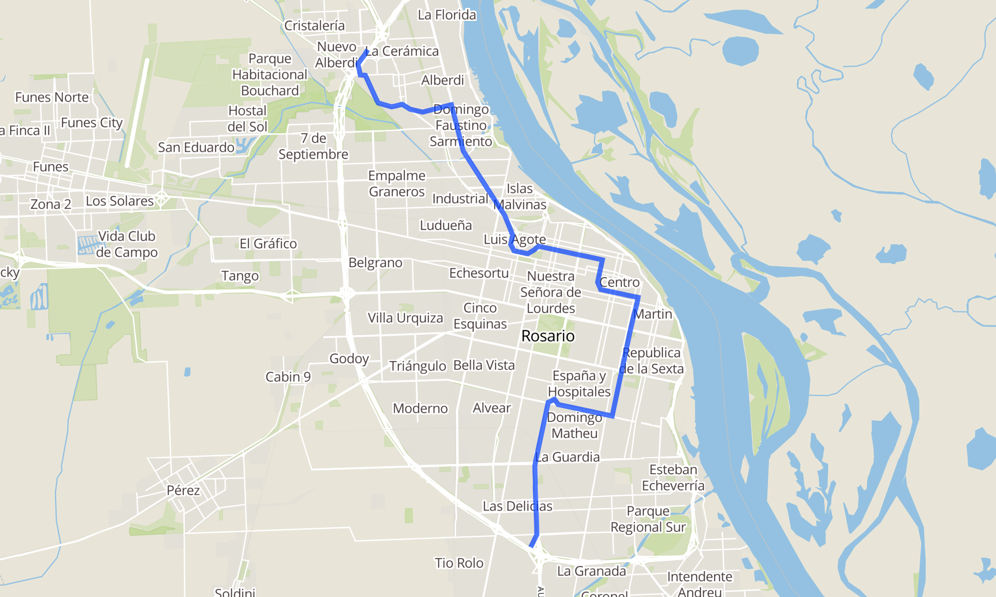 Sentido: PALLIERE y JOSE M. ROSA ‎→ JUAN PABLO II y SANTIAGO (97 paradas)