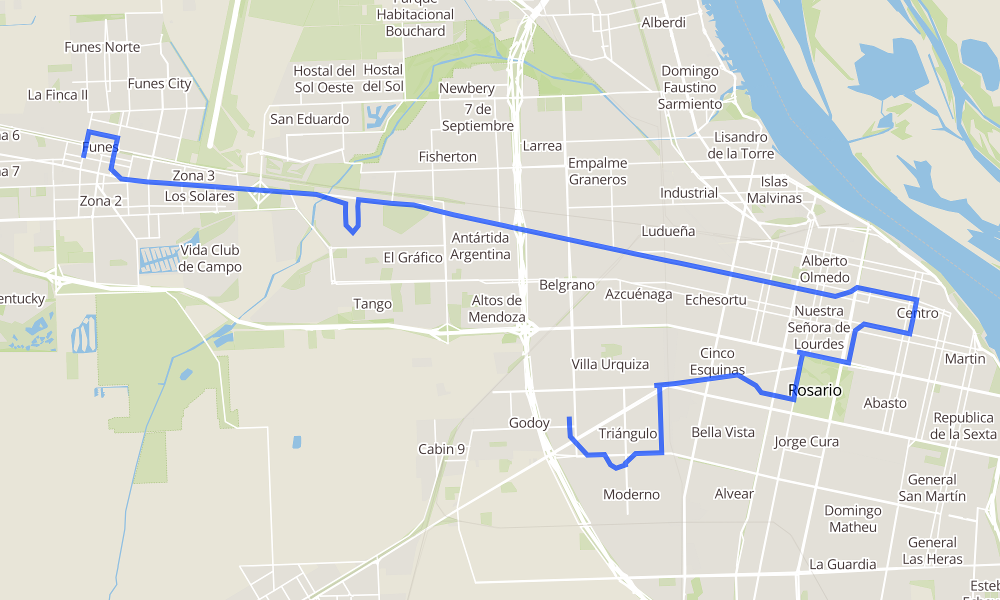 Sentido: ELORZA (Funes) y SARMIENTO (Funes) ‎→ R. DEL SALVADOR y AMENABAR (115 paradas)