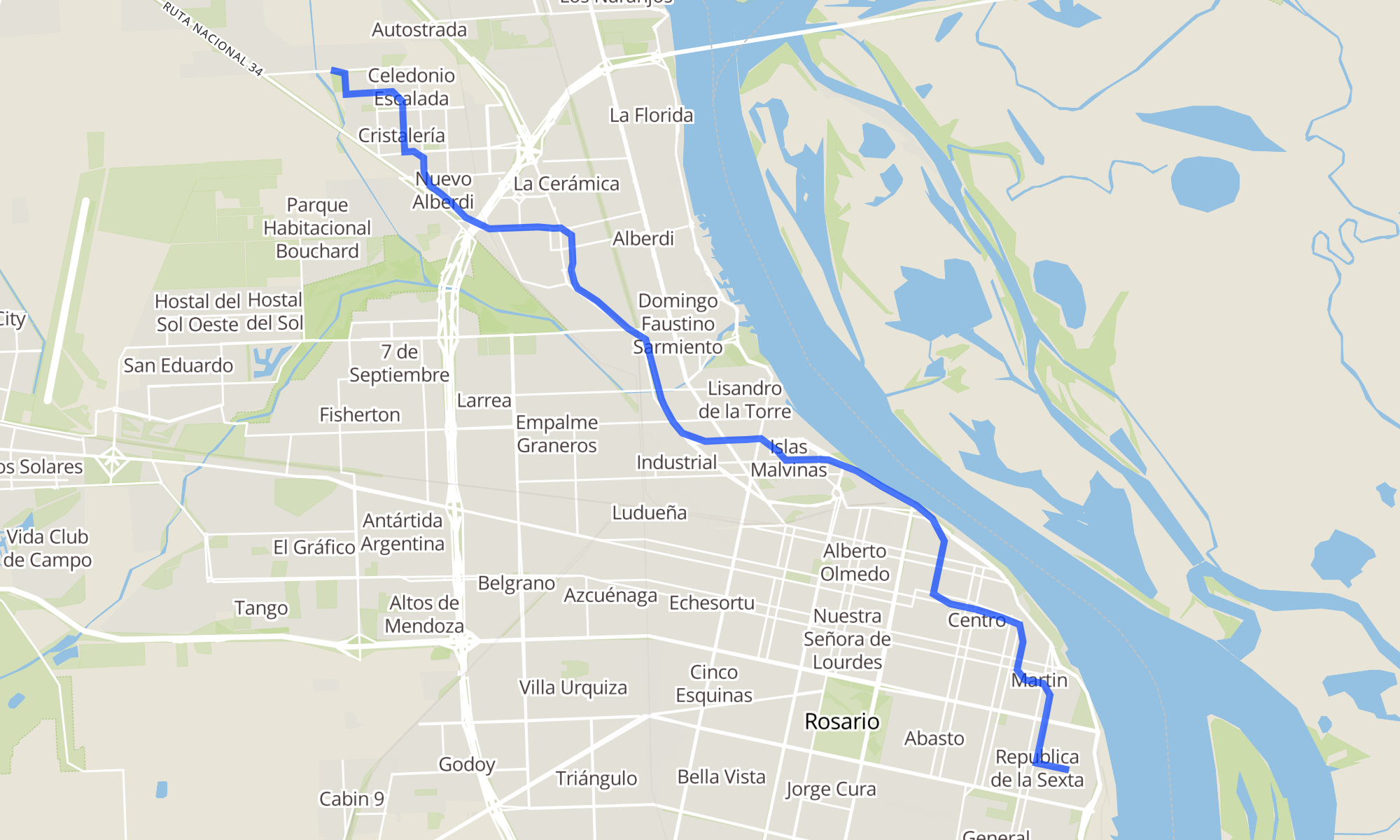 Sentido: RIOBAMBA y ESMERALDA ‎→ LIMITE MUNICIPIO y CALLE 1364 (81 paradas)