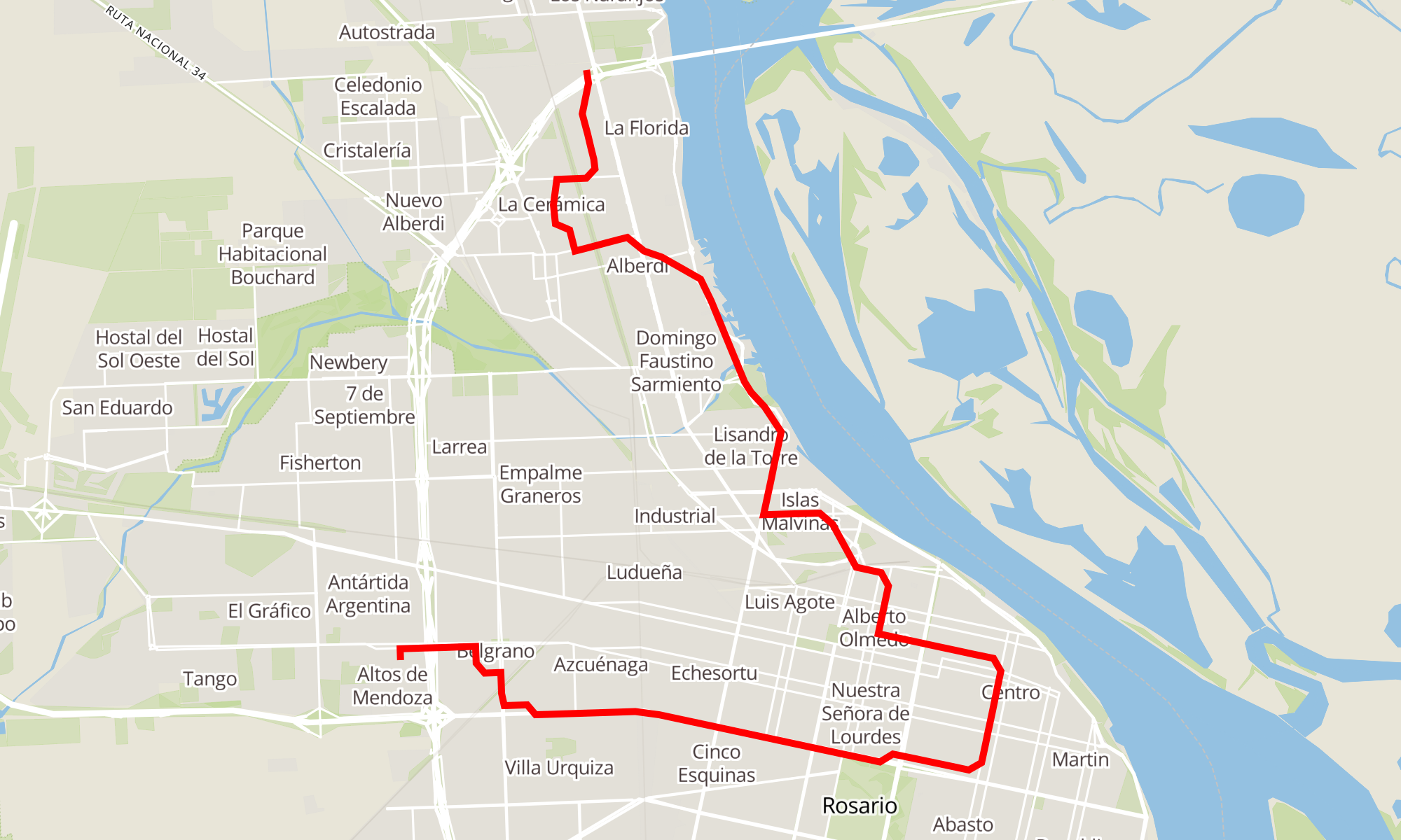 Recorrido de la línea 153 R: Donado y Forest-J. M. Rosa y Rondeau