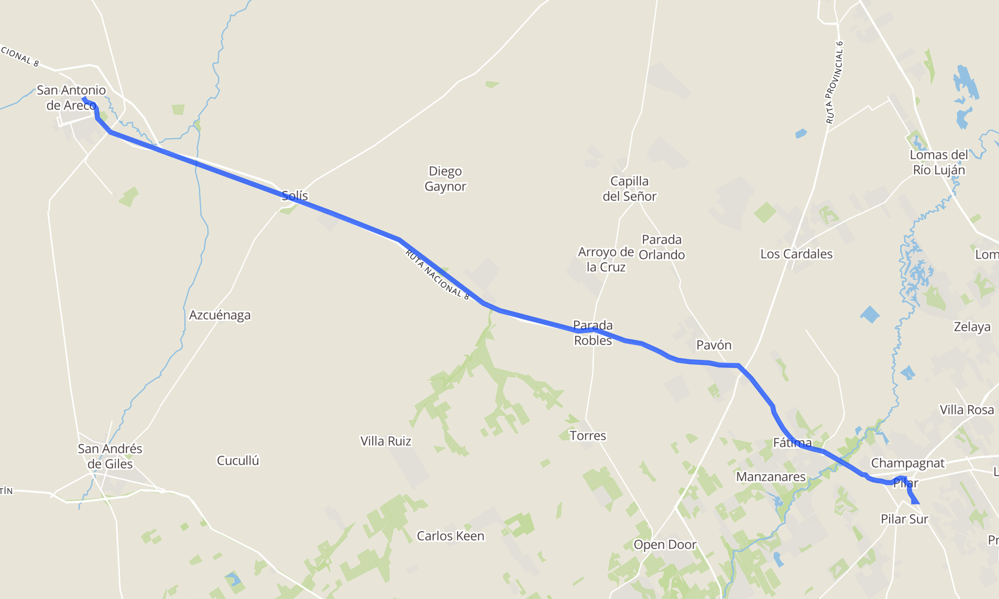 Recorrido de la línea 350: Pilar → San Antonio de Areco