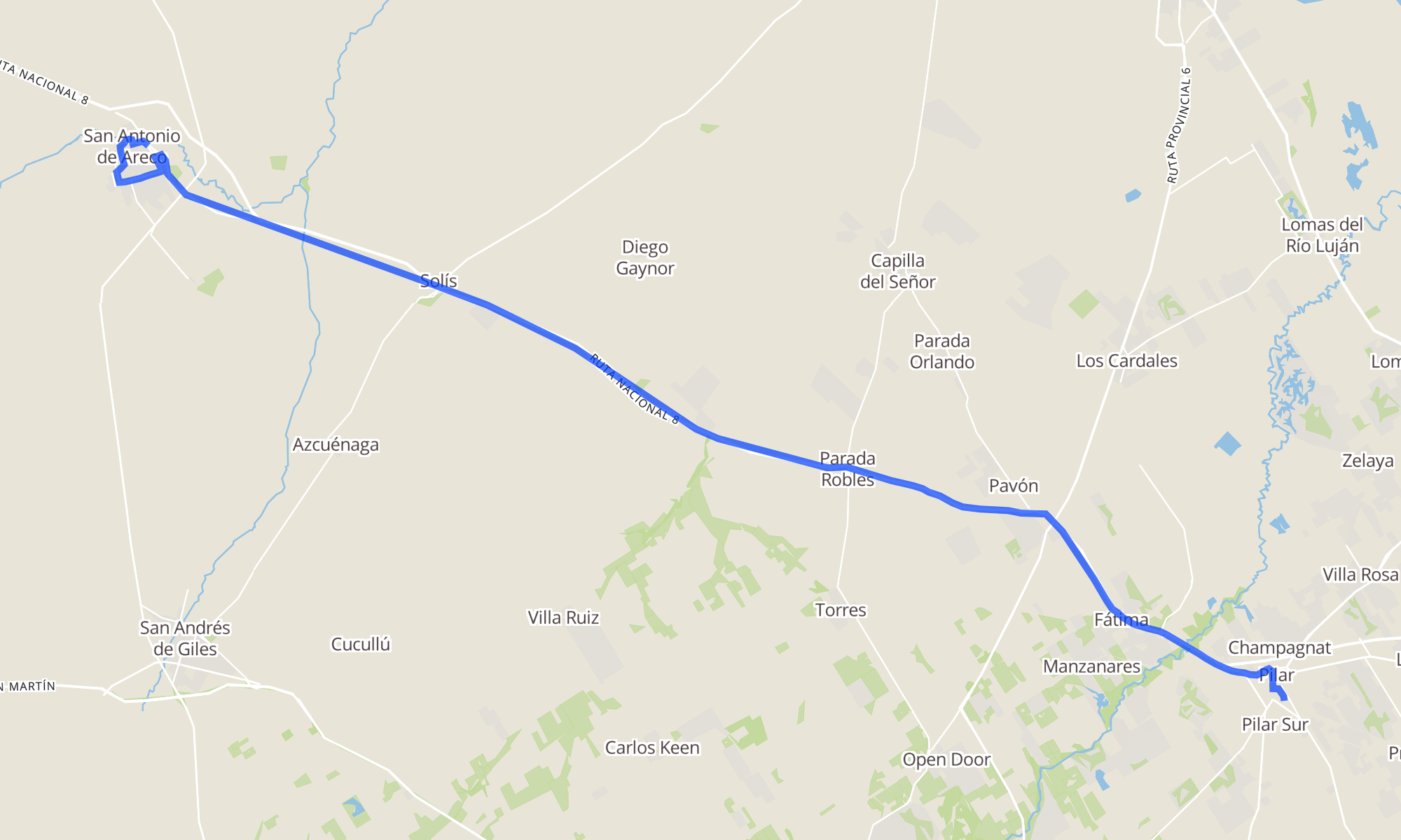Recorrido de la línea 350: San Antonio de Areco → Pilar