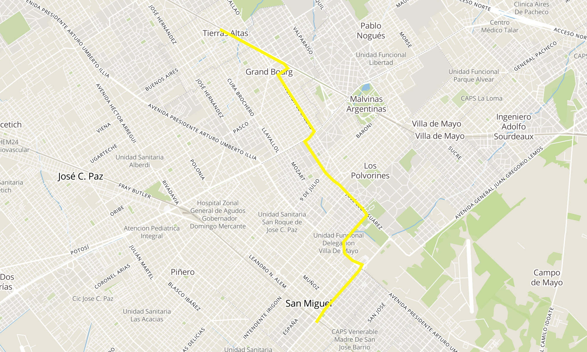 ¿Cuándo llega el recorrido Est. Tierras Altas de la línea ?