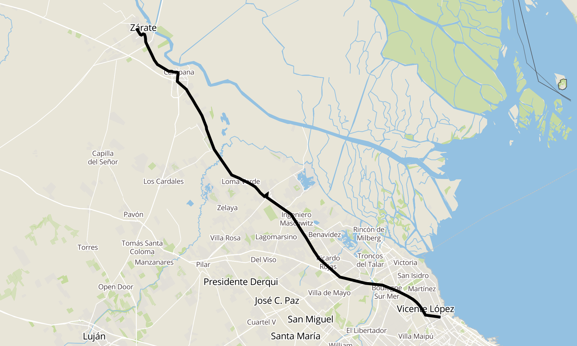 Recorrido de la línea 228A: Zárate - Pte. Saavedra (Común)