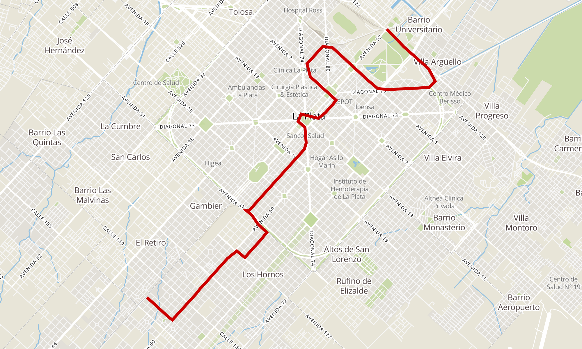Recorrido de la línea 214 A: Los Hornos x Facultades