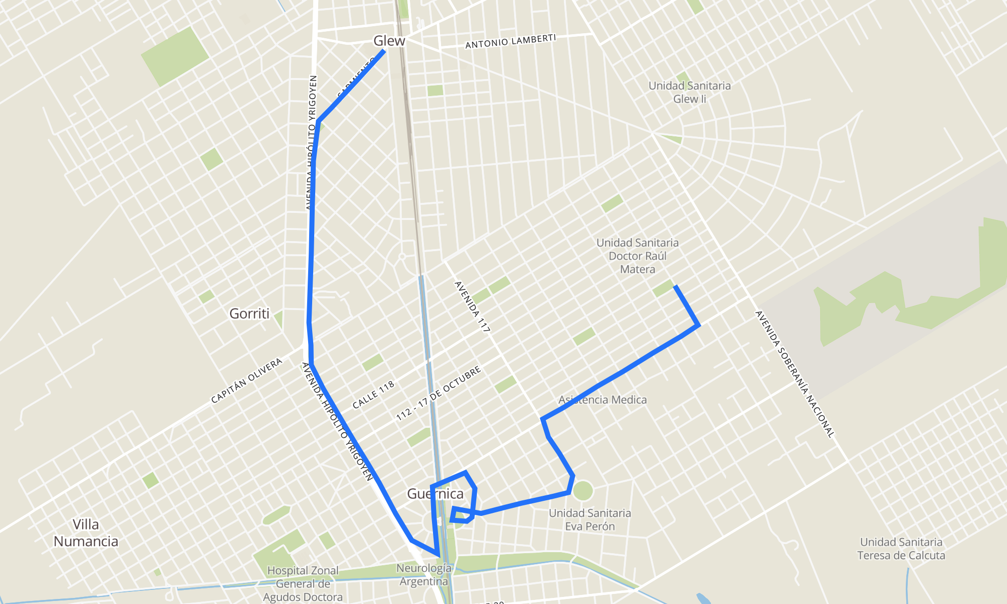 Recorrido de la línea 385: Guernica - Glew (x 33)