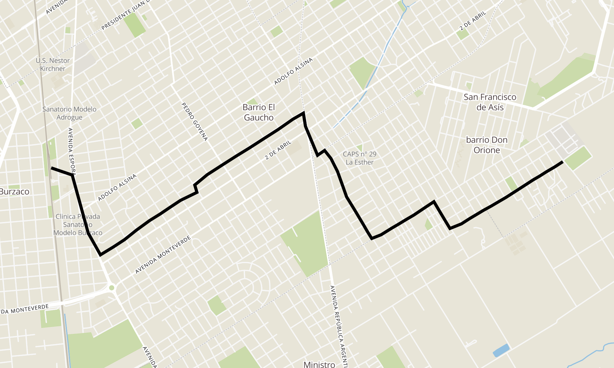 Sentido: Est. Burzaco Este salida (510-3) ‎→ Alberto Ghiraldo, 989 (57 paradas)