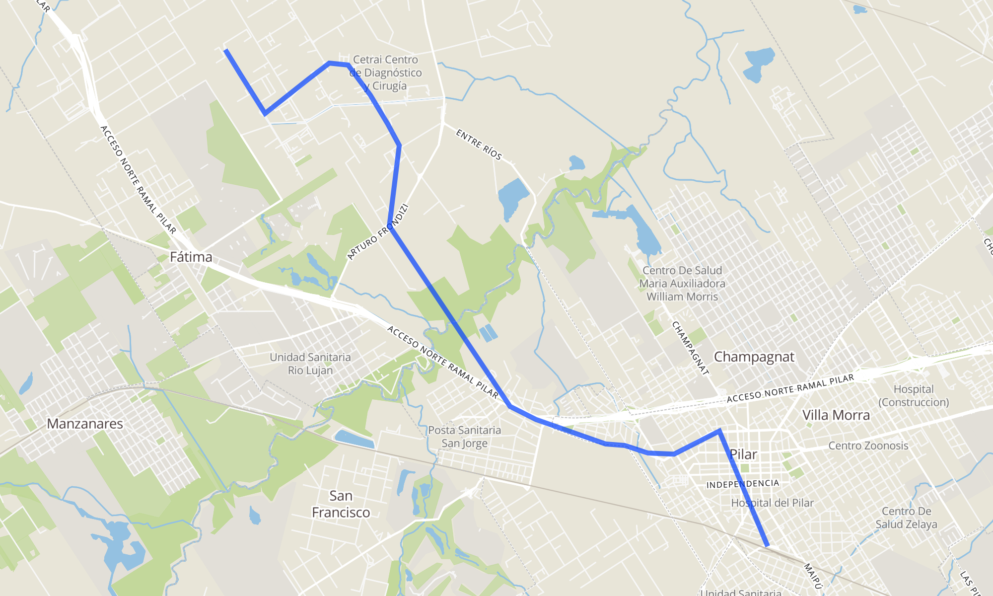 Recorrido de la línea 510: 510 R1 Parque-Pilar