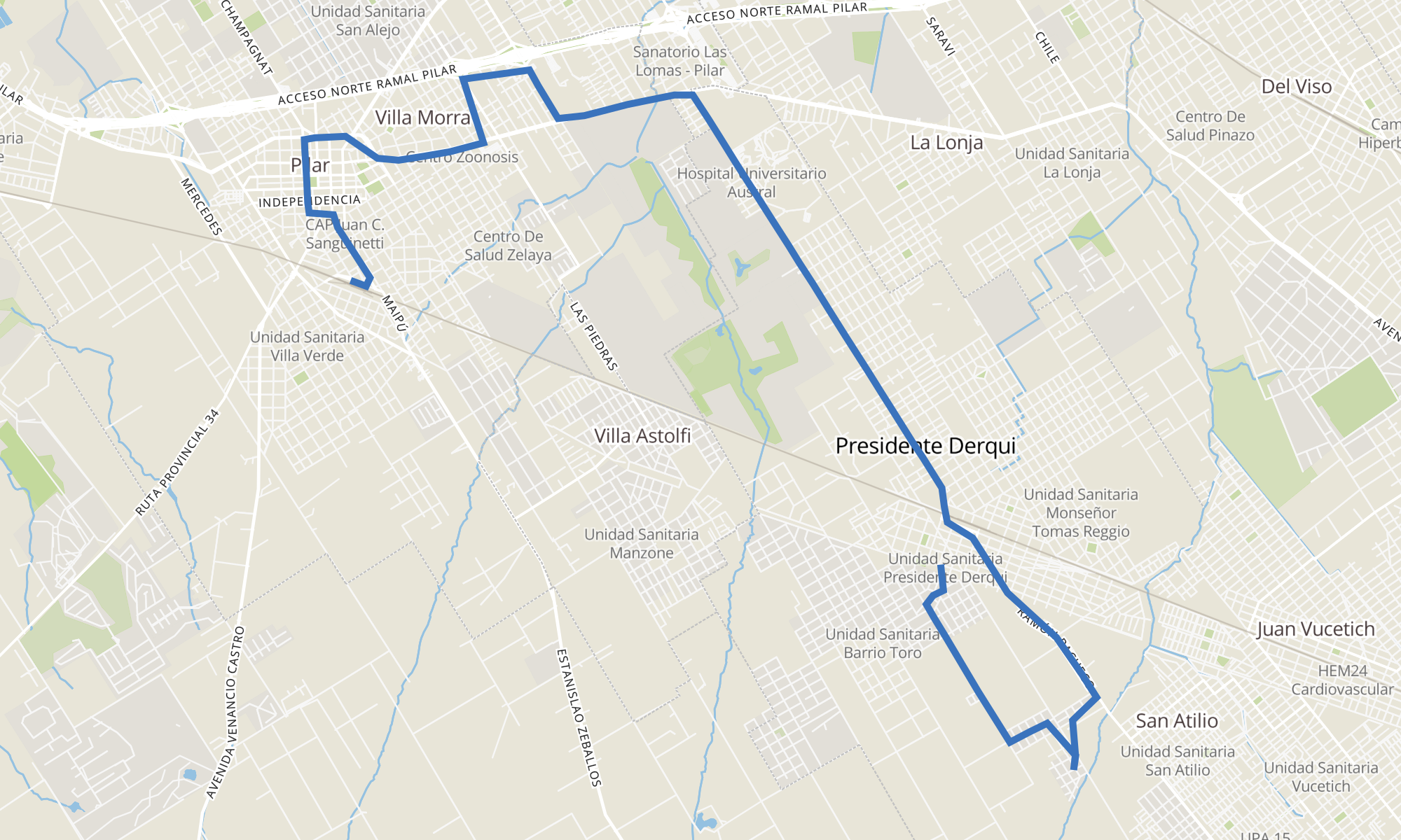 Recorrido de la línea 520: Est. Pilar - Est. Toro