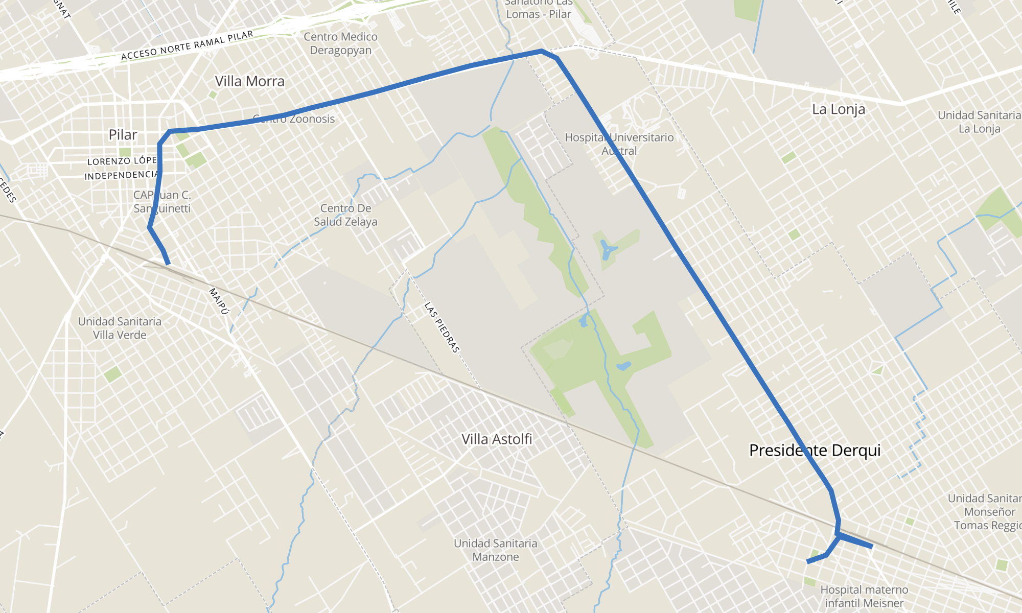 Recorrido de la línea 520: Plaza Derqui - Est. Pilar