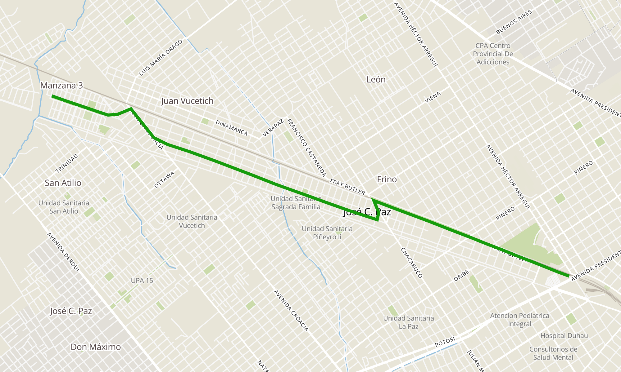 Recorrido de la línea 749: Est. José C. Paz - B°Kirchner (por Butler)