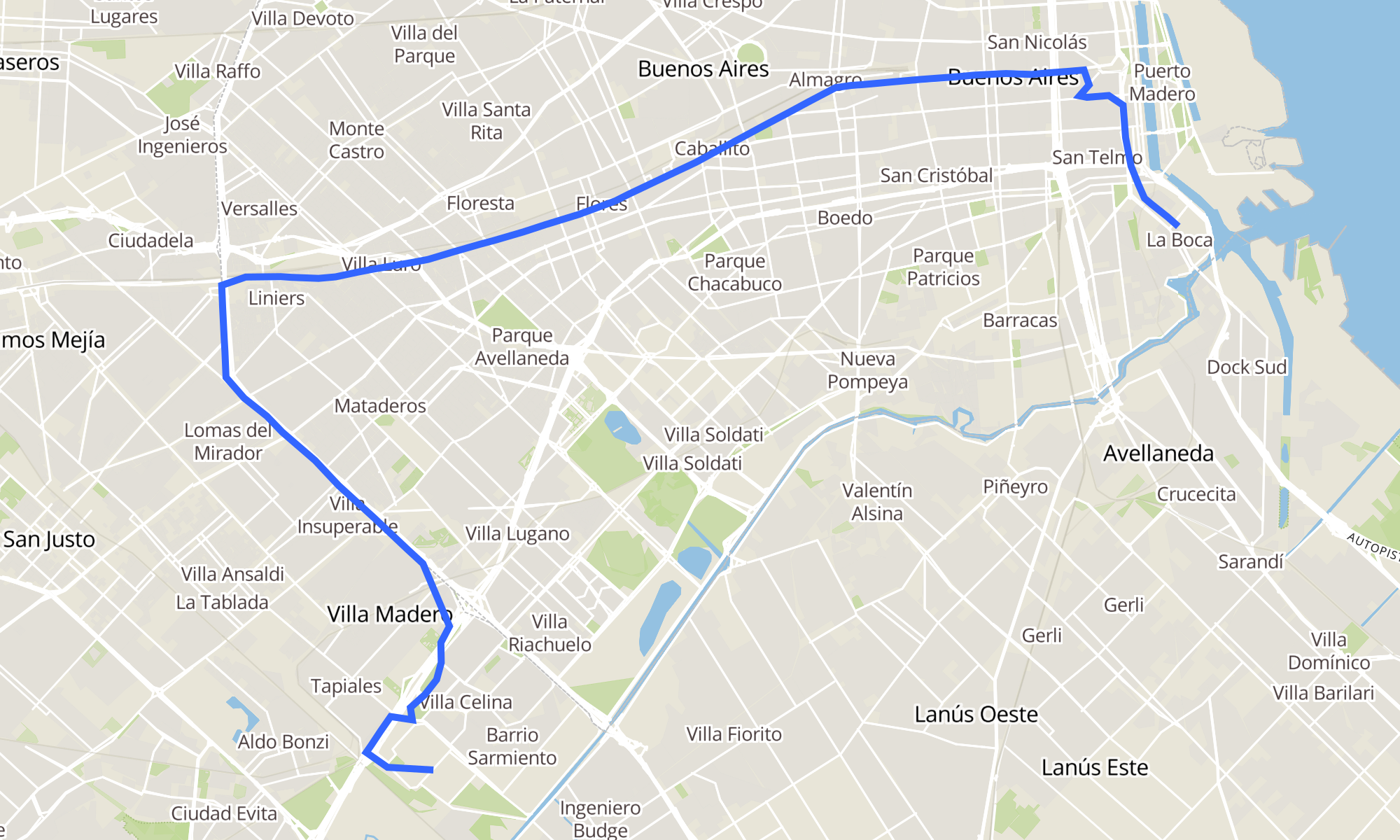 Recorrido de la línea 8: Hospital Argerich - Mercado Central (x Liniers)