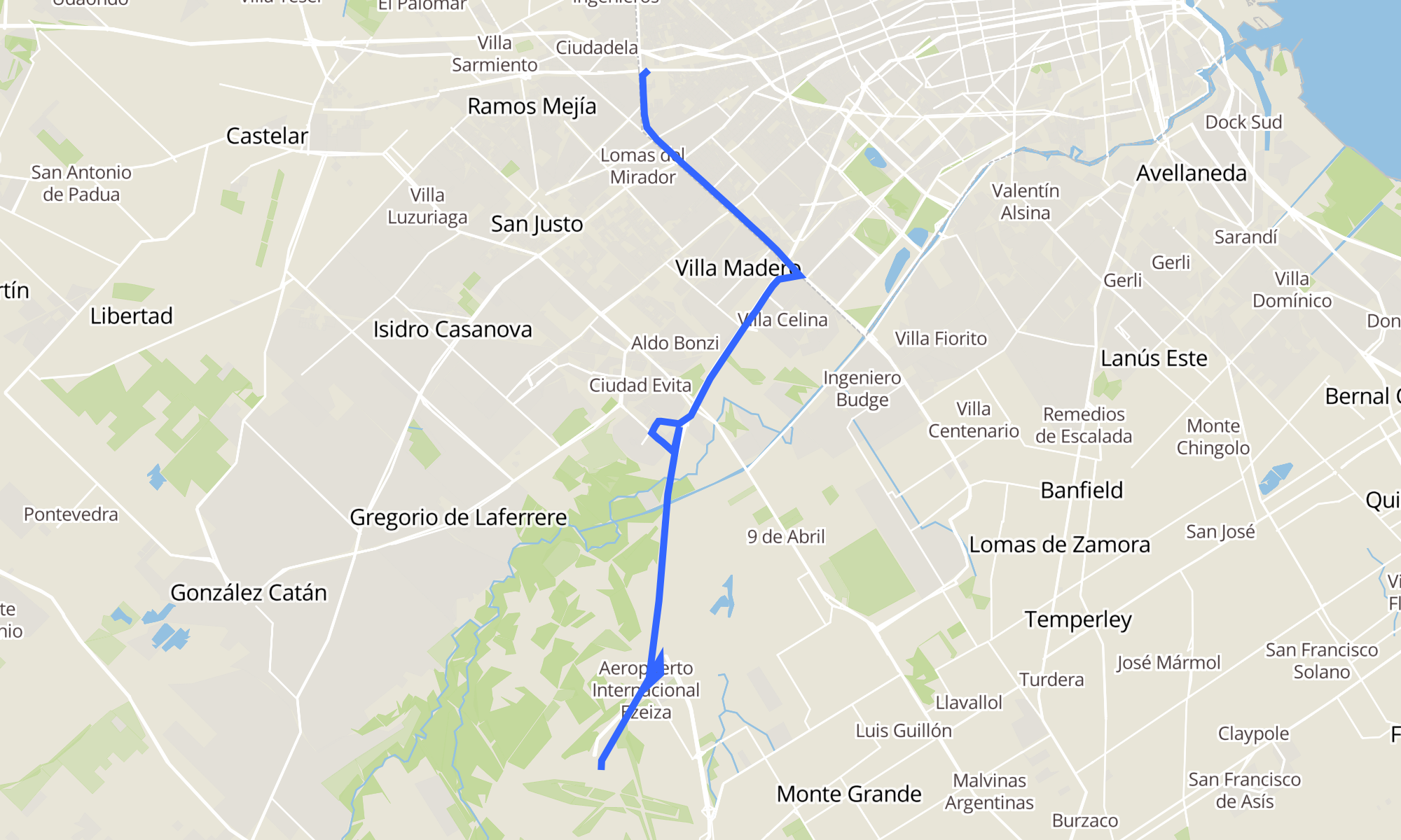 | Aeropuerto Internacional de Ezeiza (Línea 8) | Centro De Trasbordo Liniers (8 - 88 - 96) |