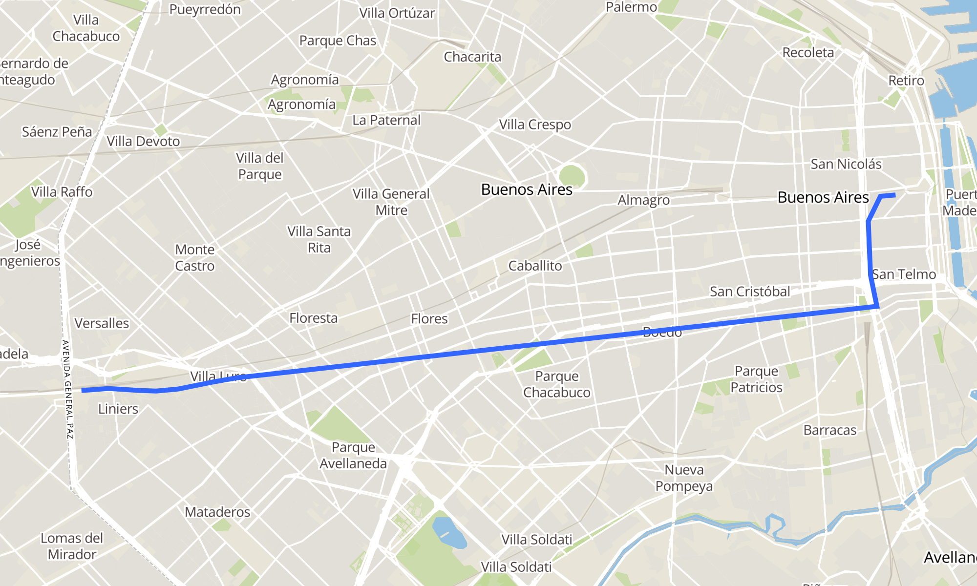 | Centro De Trasbordo Liniers (8 - 88 - 96) | Avenida Hipólito Yrigoyen Y Perú (8 - 86) |